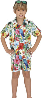 Das Hawaii Kinderkostüm für Jungen besteht aus einem bunt gestalteten Hemd mit passender kurzen Hose.