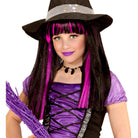 Hier kommt die kleine Fürstin der Finsternis! Die lila-schwarze Langhaarperücke für Kinder kommt finster und ein bisschen bunt daher und ist das ideale Accessoire für diverse Halloween-Kostüme!