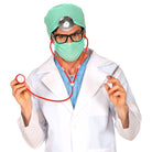 Ran an den Tisch: Mit dem Oberarzt Kostüm Accessoires 4-teilig bist du bestens ausgestattet für die kommende Kostümparty! Im Lieferumfang sind ein Mundschutz, die OP Haube, ein Stirnspiegel sowie ein Stethoskop enthalten. Alles in OP-Grün.