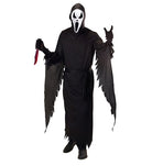 Das Scream Kostüm ist perfekt für Halloween und besteht aus einer schwarzen Robe samt Gürtel und der finsteren Maske mit Kapuze. Scream ist der 90 Jahre Kultfilm im Horror-Genre und begeistert bis heute Millionen von Grusel-Fans.