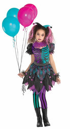 Das Zombie Harlekin Kinderkostüm besteht aus einem Kleid mit Tüllbesatz, Puffärmeln, einem lilafarbenen Kragen, einem Haarreif, Armmanschetten im gleichen Farbton sowie einer Strumpfhose. Ob für Halloween oder Karneval, mit dieser tollen Verkleidungen werden Mädchen zum auffälligen Harlekin.