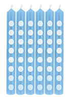12 Kuchenkerzen Hellblau mit weißen Punkten