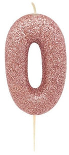 Glitzernde Zahl 0 Tortenkerze roségold 7cm
