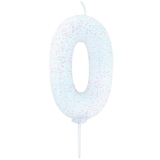 Glitzernde Zahl 0 Tortenkerze weiß 7cm