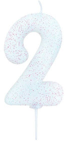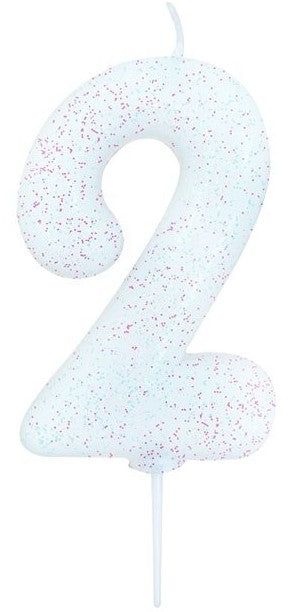 Glitzernde Zahl 2 Tortenkerze weiß 7cm