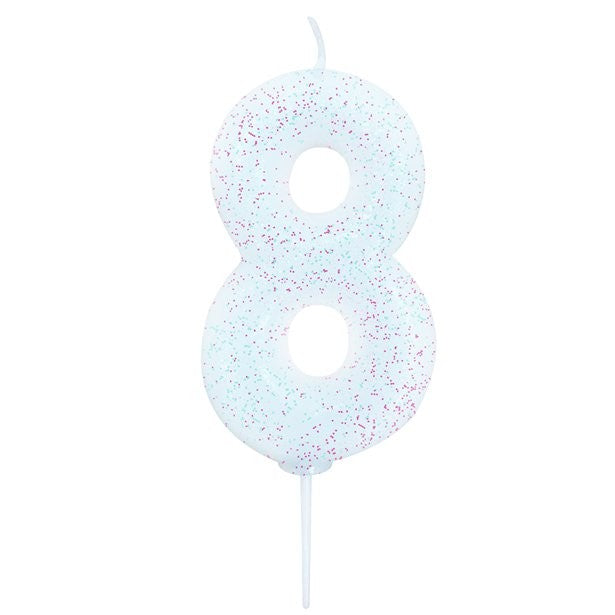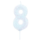 Glitzernde Zahl 8 Tortenkerze weiß 7cm
