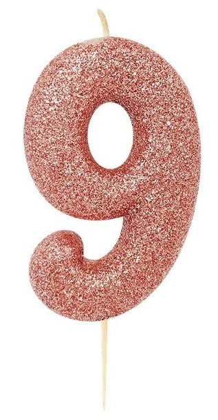 Glitzernde Zahl 9 Tortenkerze roségold 7cm