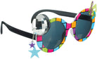 Die 70er Jahre Disco Fever Brille getönt ist ein beliebtes Accessoire und passt zu vielen Kostümierungen! Die farbenfrohe Brille ist mit einer glänzenden Discokugel und Noten geschmückt.