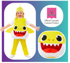 Das Baby Shark Kinderkostüm besteht aus einem wattierten, gelben Oberteil mit einem lustigen Haigesicht und Flossen, einer gelb gemusterten Hose und einer gelben Haube mit kleiner Flosse. Damit wird dein kleiner Liebling zu einem niedlichen Sonnenschein der Meere auf allen Kostüm- und Motto-Partys.