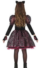Das Bezaubernde Schwarze Katze Mimie Kinderkostüm besteht aus einem Kleid sowie einem Haarband, an dem die Ohren des Tieres gestaltet wurden, ganz im Stile einer Katze.