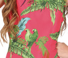 Das Bunte Hawaii Kleid für Mädchen wurde liebevoll in rosa mit Papageien Motiven gestaltet.