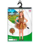 Das süße Giraffenkostüm für Mädchen ist ein niedliches Kleidchen mit Giraffen-Print und einem hübschen Tutu-Röckchen. An dem Kostüm ist ein lustiger Giraffenschwanz befestigt. Abgerundet wird das Outfit durch einen passenden Haarreif mit kleinen Öhrchen und Hörnchen.
