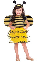 Was für eine süße Biene!  Diesen Ausruf werden kleine Mädchen mit diesem Süßen Honigbienchen Mädchenkostüm hören. Das Kostüm besteht aus einem Kleid mit schwarz-gelb geringeltem Oberteil und einem gelben Volant-Rock mit schwarzem Besatz an den Enden. Die niedlichen, ebenfalls schwarz-gelb geringelten Flügel, werden mit einem Gummizug über die Arme gestreift und so am Rücken befestigt. Dazu gehört ein gelber Haarreif mit schwarzen Fühlern für den Kopf. Mit diesem entzückenden Outfit können die kleinen, niedliche Beinchen bei vielen Anlässen fröhlich durch die Gegend sausen.
