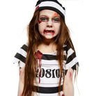 Hier kommt die kleine schaurige Ausbrecherin. Zombie Verbrecher Mädchenkostüm gehört ein zerfetztes Gefängnis-Kleid und eine gleichfarbige Mütze. Eine perfekte Verkleidung für Halloween.