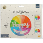 Durch das anbringen des "Happy" Aufklebers in 3D Gestaltung, erhält der Swinging Birthday Folienballon seine coole dreidimensionale Optik.
