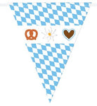 Wenn du gar nicht genug von den klassischen Oktoberfest Motiven bekommen kannst, ist diese Wimpelkette das absolute Must-Have für deine Wiesn Feier. Die O zapft is Wimpelkette ist mit Lederhosen-, Dirndl-, Brezel- und Herzmotiv bedruckt und 4m lang. Dank ihres wasserabweisenden Materials ist sie auch für den Außenbereich geeignet.