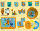 Partyset Die Sendung mit der Maus Inhalt : 8 Pappteller, 8 Pappbecher, 1 Pack Servietten (20 Stück), 8 Einladungskarten, 8 Namensaufsteller, 8 Latex Ballons, 8 Platzsets , 1 Wimplekette 3,5 m .