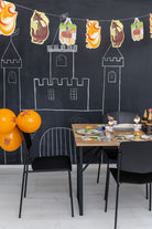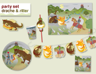 Partyset für 8 Kinder : 8 xPappteller. 8 x Pappbecher, 1 Pack Servietten ( 20 Stk),8 Papier Trinkhalme mit Namenschild, 8 Einladungskarten in Drachenform, 8 Platzsets, 1 Wimplekette 3,5 m.