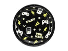 Die 6 Pappteller Press Play 23cm dürfen auf keiner Geburtstagsparty eines Game-Fans fehlen! Die 23cm großen, schwarzen Pappteller tragen die Aufschrift Play, You Win!
