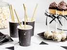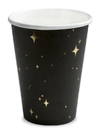 Ob für Silvester, eine elegante 20er Jahre Party oder eine Weltraumfeier. Die 6 Sternenschimmer Pappbecher 260ml sind für diverse Anlässe eine hübsche Tischdeko. Schwarz-matt gehalten sind sie mit goldenen Sternen bedruckt. Dieser Kontrast verleiht den Trinkbecher eine edle Optik.