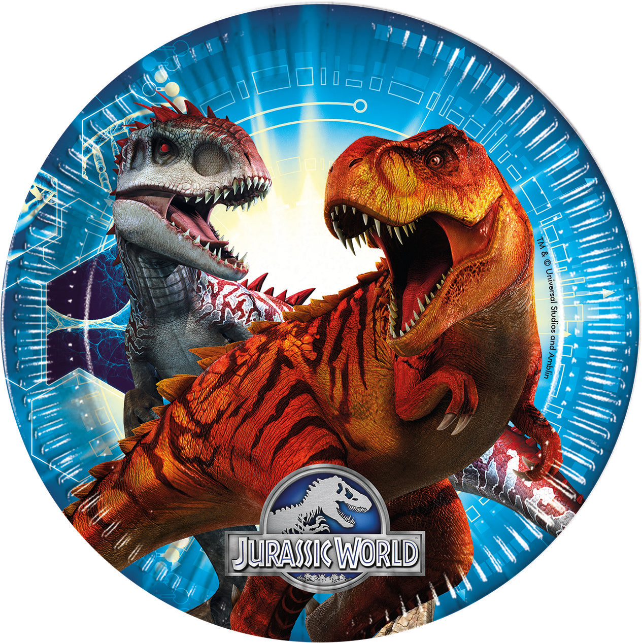 8 Jurassic World Dinos Runder Pappteller 23cm