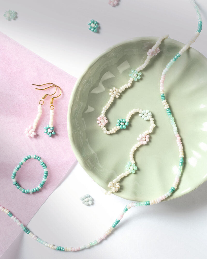 Perlen Set Rocailles pastell 90g mit Nylonfaden und Verschlüsse Kartonetui