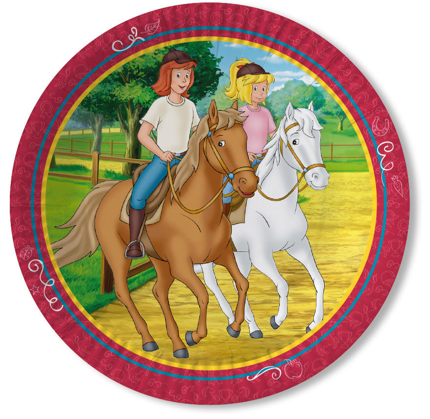 Die 8 Bibi und Tina Teller 23cm sind mit den beiden Pferdefreundinnen bedruckt und ideal für einen Mädchen-Geburtstag geeignet.