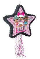 Die beliebten Puppen gibt es nun auch in Form der LOL Surprise Zieh-Piñata. Die 58 x 58 x 12cm große Piñata kann mit Süßigkeiten, Konfetti oder kleinen Geschenken gefüllt werden. Damit wird deine Party einfach fantastisch. Anders als eine gewöhnliche Piñata muss diese nicht zerschlagen werden; stattdessen wird mit verbundenen Augen an den langen, bunten Bändern gezogen, bis die Süßigkeiten herausfallen. Hinweis: Die Füllung ist nicht im Lieferumfang enthalten.
