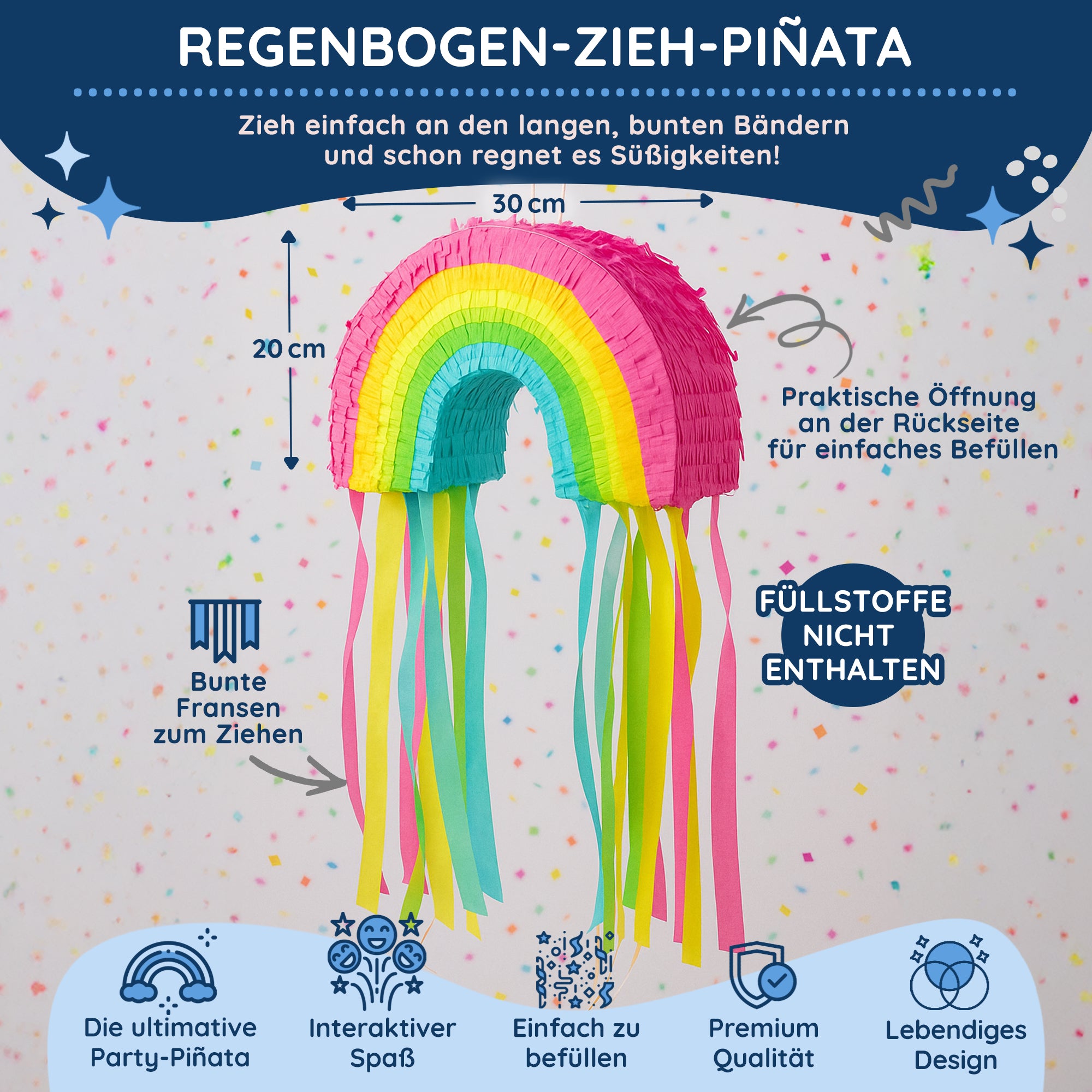 Egal, ob du eine kunterbunte Regenbogen-Piñata, einen wilden Dinosaurier oder das Lieblings-Einhorn deines Kindes suchst - wir haben für jedes Partymotto das passende Modell im Sortiment. Unsere Piñatas lassen sich ganz einfach mit Süßigkeiten, kleinen Spielzeugen oder Konfetti füllen und sorgen garantiert für Spannung und gute Laune!