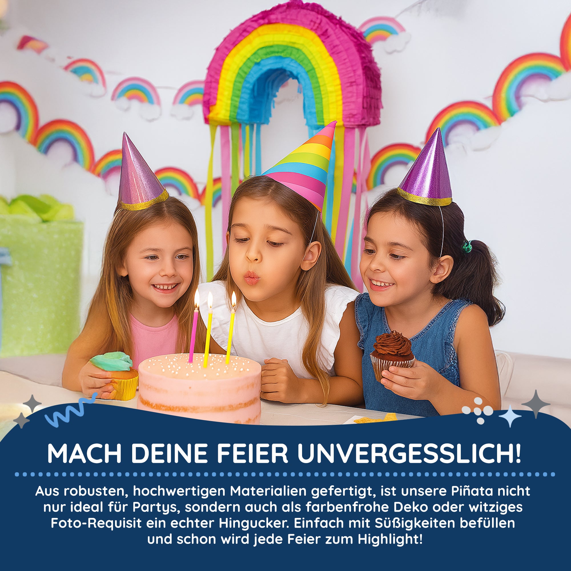 Mit einer Piñata schaffst du auf deiner Feier einen besonderen Moment, auf den sich alle freuen. Wer schafft es, die Piñata zu knacken? Dieser Spaß bringt Kinder zusammen, fördert Teamgeist und Bewegung - gleichzeitig entsteht eine tolle Foto-Gelegenheit für bleibende Erinnerungen.