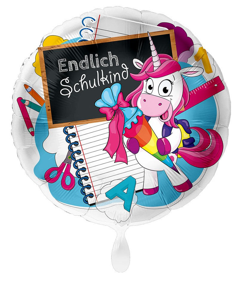 Auch für kleine Einhörner wird es Zeit den Kindergarten zu verlassen und die Schulbank zu drücken. Aber erst einmal soll der große Tag der Einschulung gebührend gefeiert werden! Fans der magischen Pferde werden den Einhorn Folienballon Endlich Schulkind lieben! Insgesamt ist der Ballon 43cm groß.