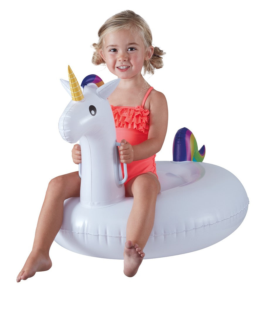Soo ein süßes Einhorn!  Mit der Einhorn Kinder-Badeinsel ist Badespass garantiert. Reite übers Wasser mit deinem Einhorn. Die Badeinsel hat die Maße 90 x 55cm und kommt mit zwei praktischen Haltegriffen.