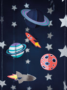 Auf in ferne Galaxien und das Weltall erforschen. Dein Kind ist eine richtiger Fan des Weltraums und wünscht sich eine Weltallparty zum Geburtstag? Dann sind diese 5 Weltallt Party Hänger die perfekte Dekoration. Wie in der Galaxie scheinen hier Planeten und Raketen zu schweben. In Kombination mit weiteren Wetall Produkten wie Teller, Becher und Servietten ist deine Partydekoration vollständig und einer tollen Feier steht nichts im Wege.