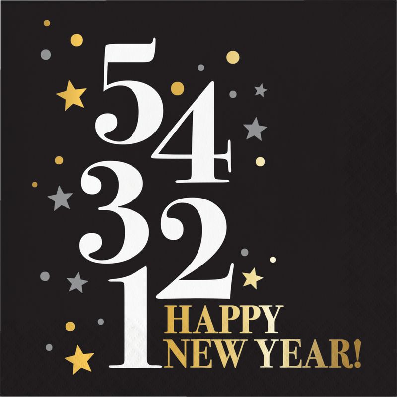 16 Servietten Silvester 2025 Countdown Black and Gold 33x33cm