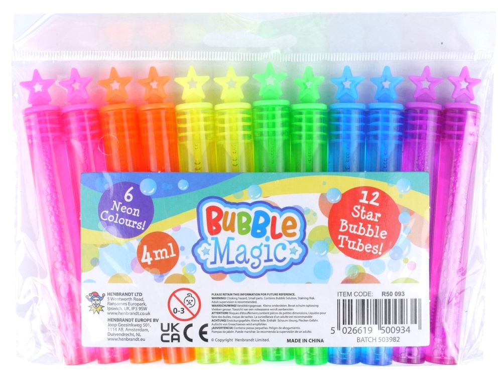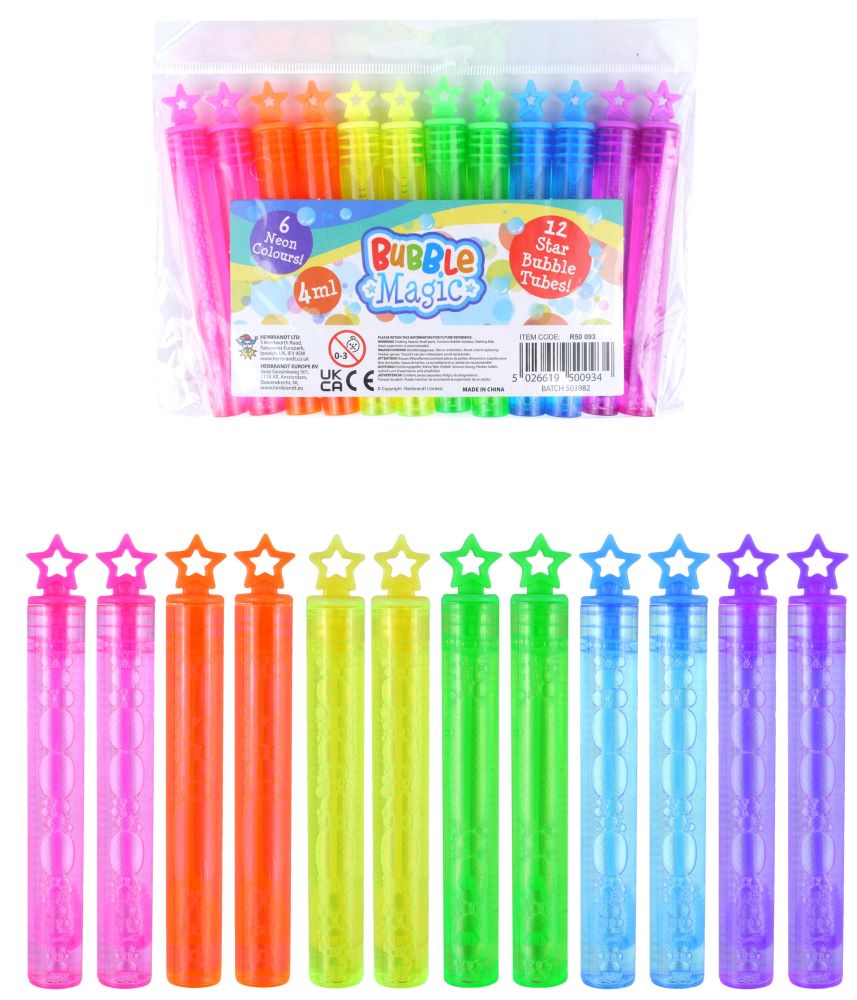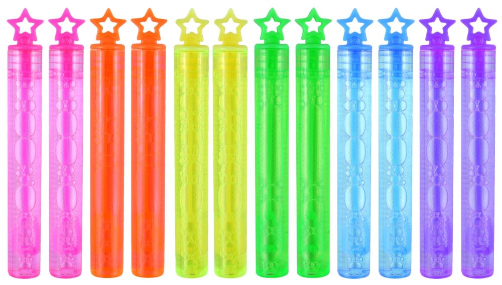 Die 12 bunten Sterne Seifenblasen sind ein tolles Mitgebsel für Kindergeburtstage oder Geschenktüten. Die 12 bunten Röhrchen kommen in jeder der 6 Farben als Paar. Das Fassungsvermögen beträgt 4ml