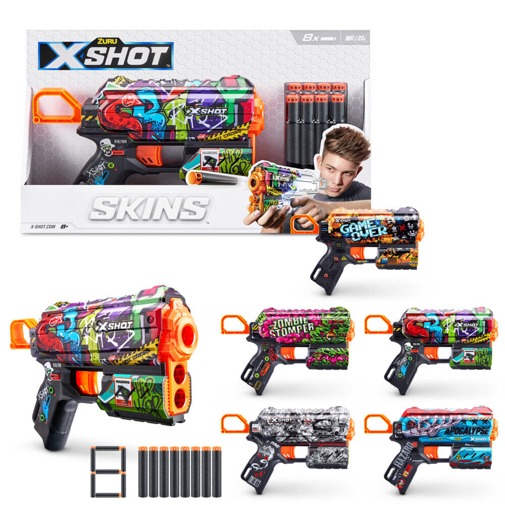 Softdart Pistole XSHOT Skins Flux mit 8 Darts 5,3x32x18,3cm sortiert
