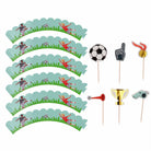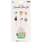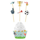 Im Lieferumfang sind insgesamt 6 Fantastic Football Cupcake-Topper enthalten, welche eine Länge von etwa 10cm aufweisen. Die Motive zeigen eine Hand mit erhobenem Zeigefinger, Fußballhorn, Trillerpfeife, Siegerpokal, Medaille und ein Fußball sowie 6 ca. 22,5 cm lange Banderolen.