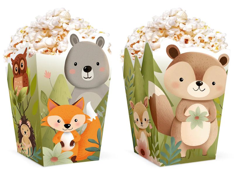 6 Popcorn Schachteln Tiere im Wald 15x8,5cm