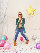 Was hat uns dieser glänzende Stern wohl aus den Weiten des Universums mitgebracht? Traditionell werden Piñatas mit Konfetti, Süßigkeiten und kleinen Spielzeugen gefüllt. Aber auch Gutscheine und Schmuck können dadurch originell verpackt werden. Die Goldene Sternen Zieh-Piñata ist auch toll zu Weihnachten sowie allen festlichen, glänzenden Anlässen. Die goldene Piñata ist 44,5 x 42,5 x 9cm groß und anders als eine gewöhnliche Piñata muss diese nicht zerschlagen werden; stattdessen wird mit verbundenen Augen an den langen, bunten Bändern gezogen, bis die Süßigkeiten herausfallen.