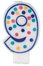 bunte Zahlenkerze 9 mit Pünktchen