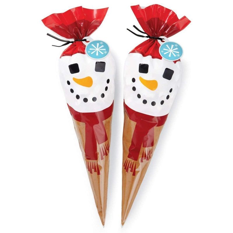 10 spitze weihnachtliche Zellophantüten Schneemann 13x26cm