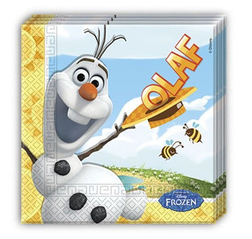 Starte gemeinsam mit dem quirligen Schneemann aus Frozen in den Sommer mit den Olafs Sommerspaß Servietten. Auf den 20 Servietten springt Olaf fröhlich in die Luft und freut sich über den Sonnenschein. Die Servietten sind 33 x 33cm groß.