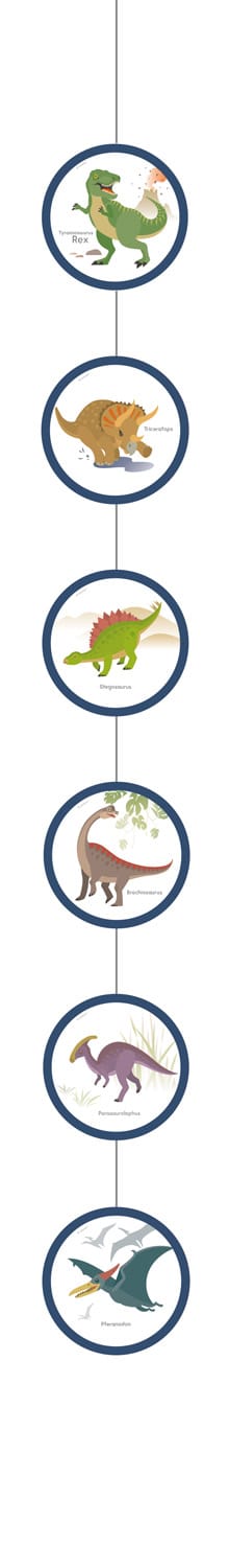 Die Happy Dinosaur Hängedeko verwandelt jeden Raum in eine tolle Dino Party. Mit saurierstarken Motiven lassen die Hänger Kinderaugen neugierig werden, die dann auf den einzelnen Schildern ihre Lieblingsdinos mitsamt ihrer Namen erkennen. Durch die Länge von je 1,3m sind die 4 Stränge tolle Hingucker im Kinderzimmer, wie auch auf dem Kindergeburtstag.