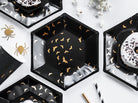 Die 6 Be Scary Pappteller sind 20cm groß und wirken durch ihre goldenen Fledermäuse auf den schwarzen Tellern ebenso edel wie schaurig. Dazu kommt noch die außergewöhnliche Hexagon-Form mit 6 Ecken, die auf dem Tisch extrem stylisch aussieht. Kombiniert mit den anderen Artikeln der Be Scary-Serie oder anderen schwarzen bzw. goldenen Deko-Artikeln kannst du eine wundervolle Halloween-Deko kreieren.