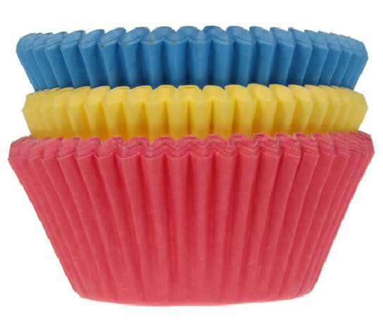 75 Papier Muffin Förmchen in Rot Gelb und Blau