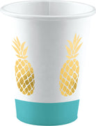 Du möchtest deine Party sommerlich und dezent gestalten? Hier sind 8 Ananas Garten Pappbecher, in schlichtem Weiß mit türkisem Streifen am Boden und goldenen Ananas als Pointe. Die Becher haben eine Füllmenge von 250ml und lassen sich prima mit anderen Dekoartikeln kombinieren.