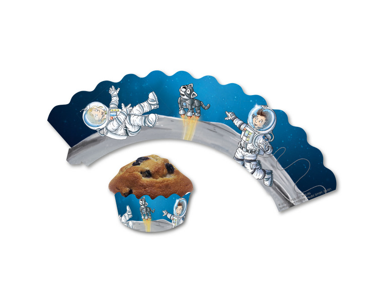 12 Deko-Banderolen für Muffins und Cupcakes im Major Tom . Die Banderolen sind gefertigt aus 170g Papier und auf 3 Größen einstellbar.Die Banderolen sind nicht hitzebeständig , erst nach dem Backen umlegen.