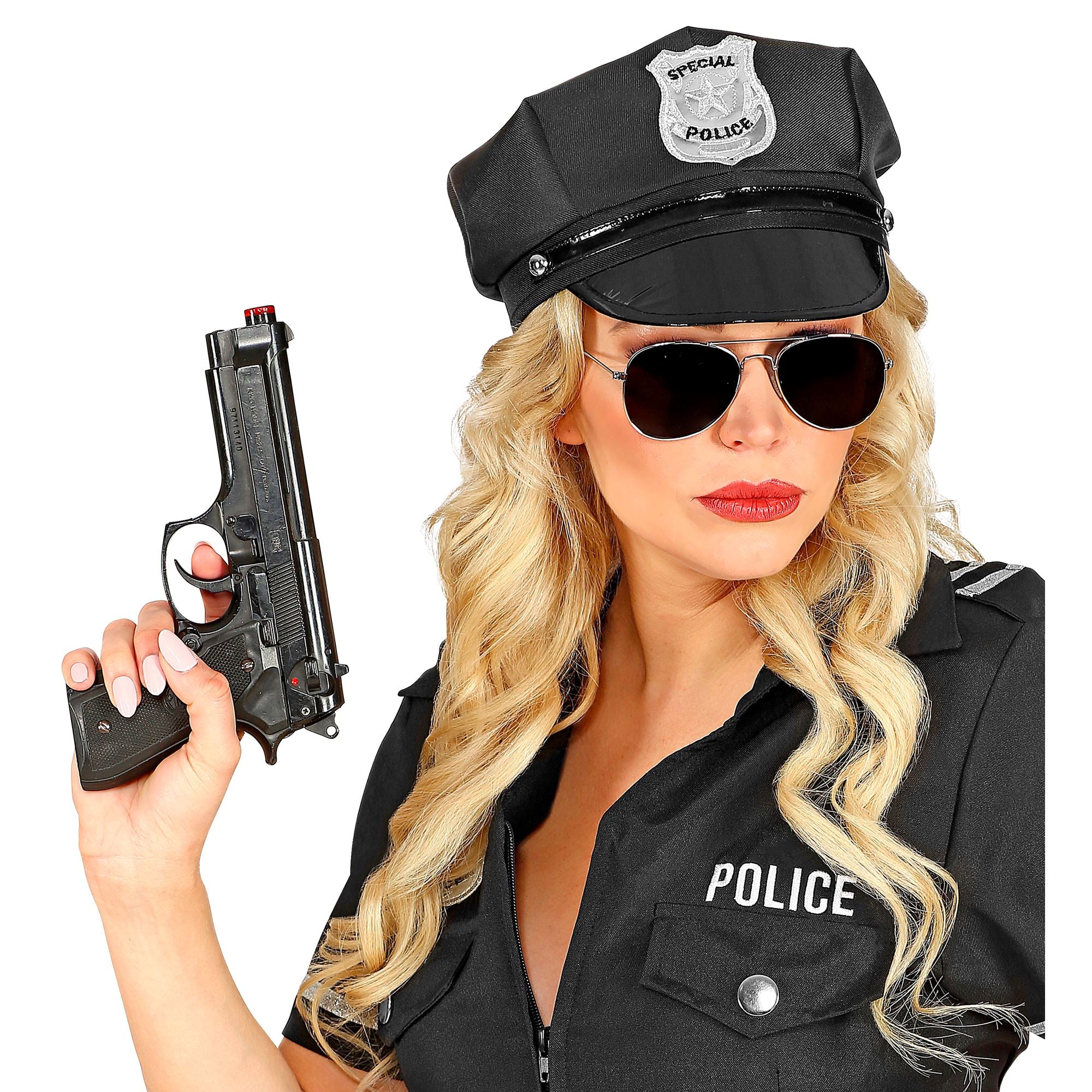 Wer ein ernstzunehmender Cop sein möchte braucht natürlich auch die passende Mütze dazu! Mit unserer größenverstellbaren Special Police Mütze bist du sofort ein unverkennbares Mitglied der Spaßpolizei. Optisch ist die Mütze angelehnt an die US amerikanischen Police Officers. Auf dem sattem Schwarz der Mütze sticht das silberne Logo deutlich heraus.