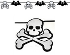 mit großen Totenköpfen und Fledermäusen aus Filz