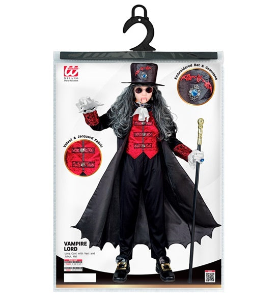 Mit diesem beeindruckenden Herr der Vampire-Kostüm wird jeder Junge zum geheimnisvollen Fürsten der Nacht! Der elegante, schwarze Umhang schwingt majestätisch bei jeder Bewegung und verleiht dem Träger eine düstere Aura. Der passende Hut rundet das edle Vampir-Outfit perfekt ab und sorgt für einen unvergesslichen Auftritt an Halloween, Fasching oder jeder Kostümparty.